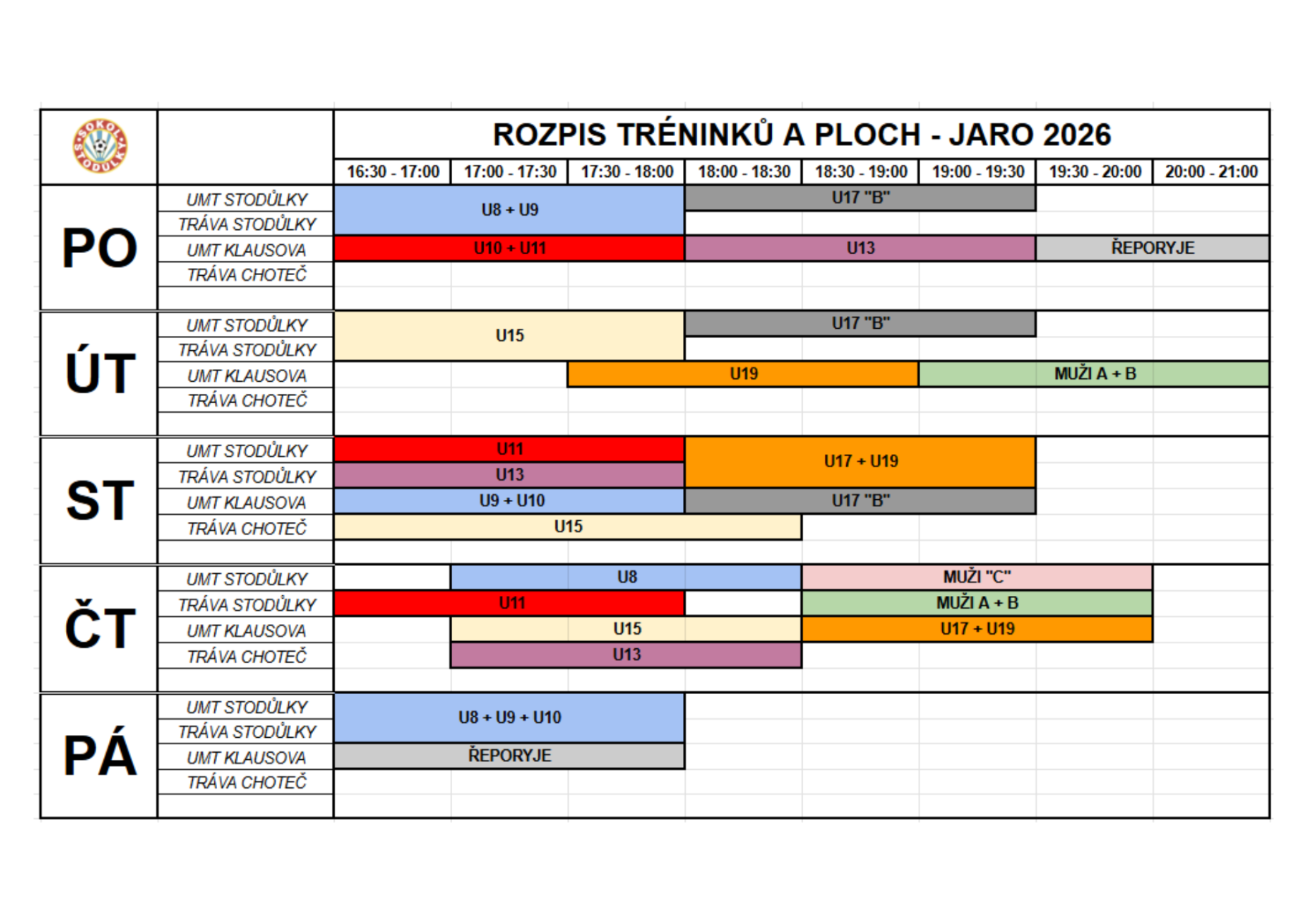 Rozpis hanspaulka UMT Stodůlky - jaro 2026